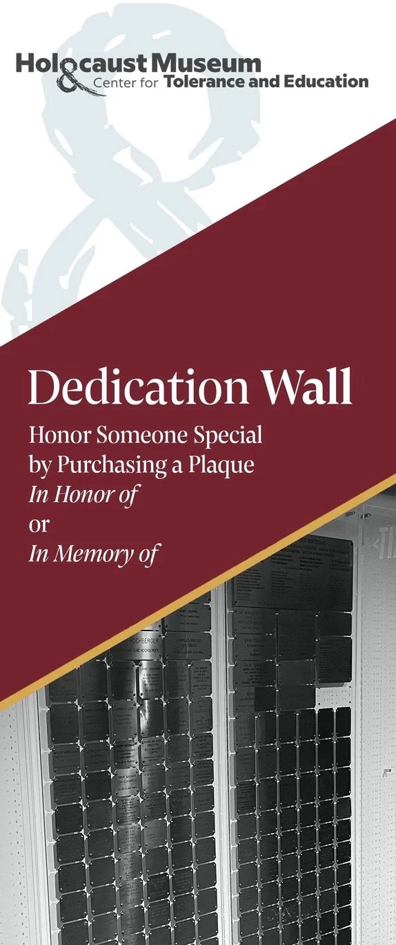 Permanently memorialize a loved one, express your sympathy, commemorate a special milestone (such as marriage, birth, anniversary) with a lasting bronze plaque on the Dedication Wall of our Museum.